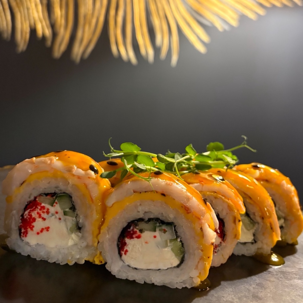 - Тигрова креветка/манго/сніжний краб з ікрою "Масаго"