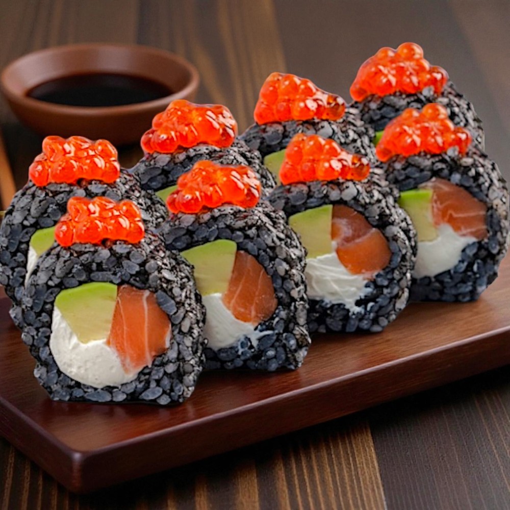 - Лосось/авокадо/сніжний краб з ікрою "Масаго"